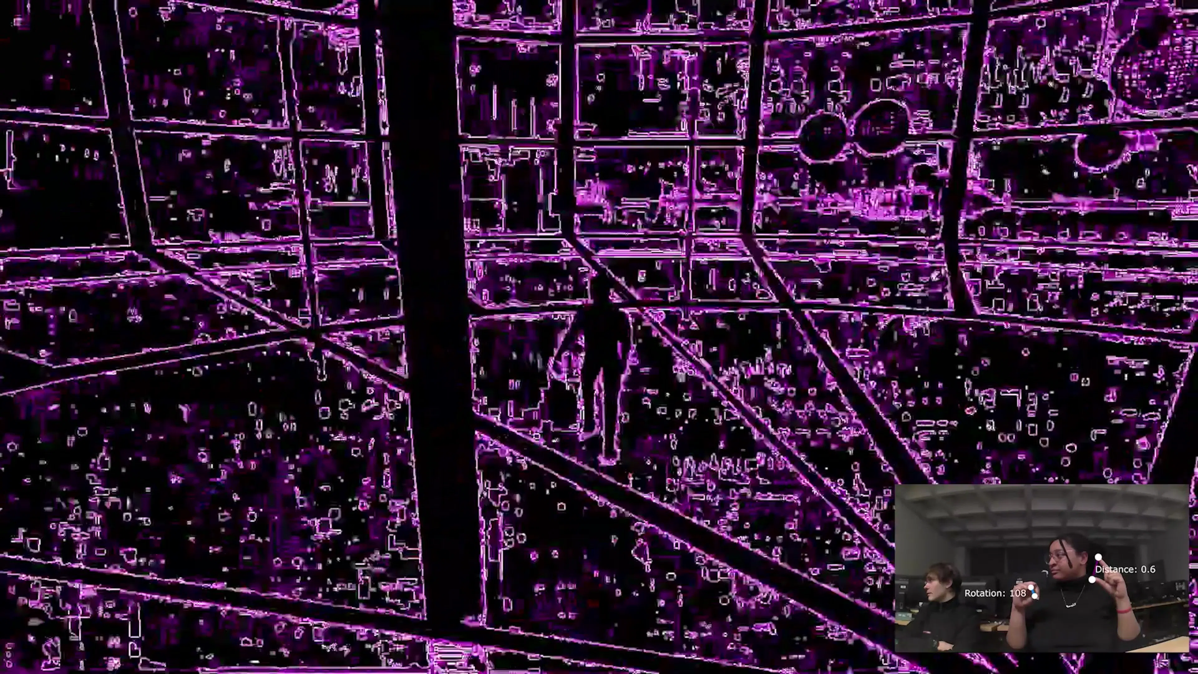 A fusion of immersive technologies invites visitors to explore geometric worlds where data corruption gives way to expressionism. Gesture-based navigation allows visitors to immerse themselves in a world of sonic and visual glitches.