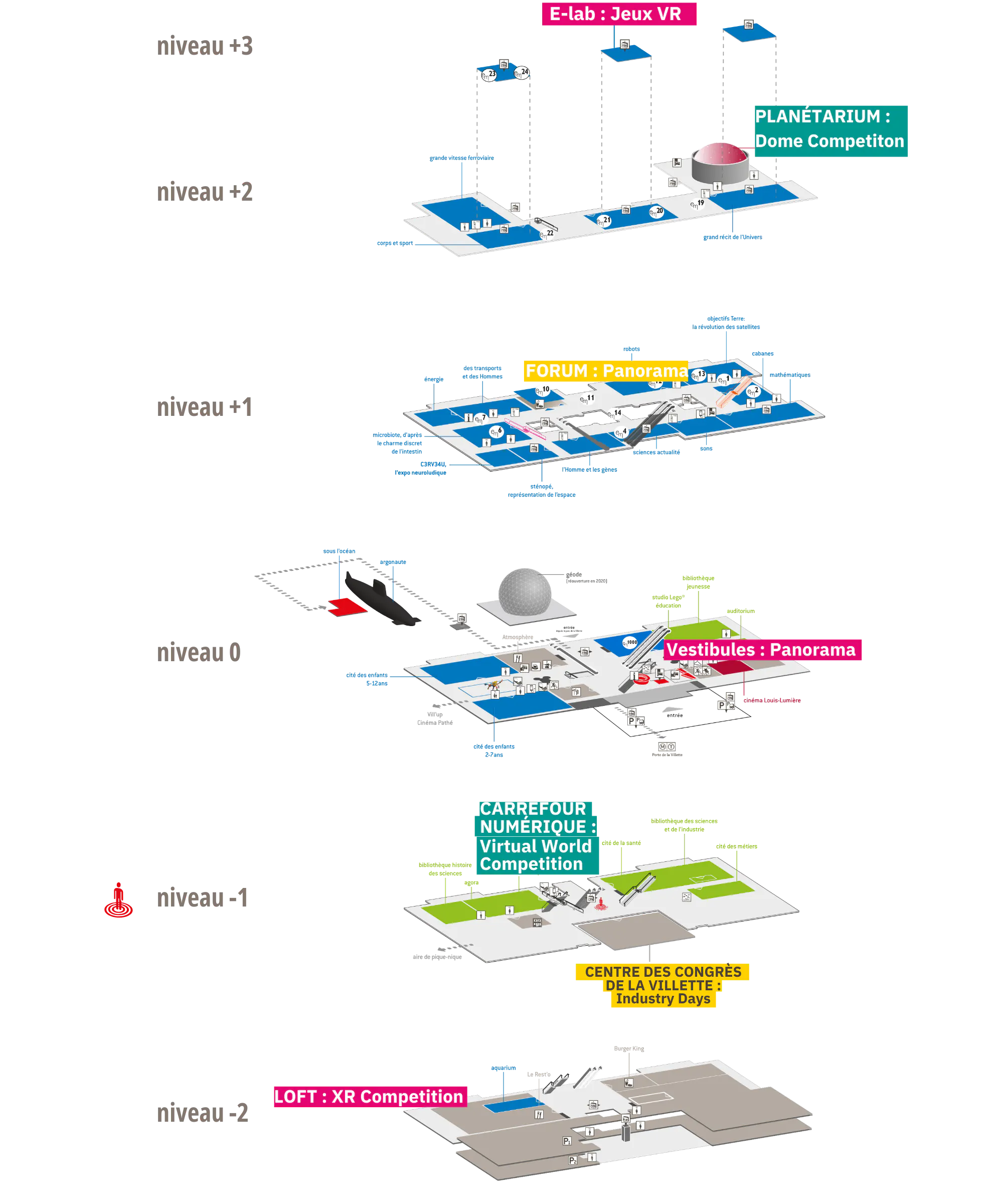 Niveau -1 (à l'intérieur du bâtiment) : Industry Days, XR Development Market, XR Distribution Market